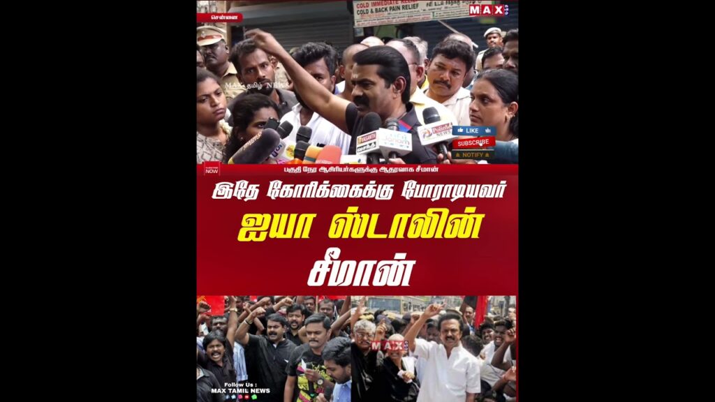 எதிர்க்கட்சியாக இருக்கும் போது பகுதி நேர ஆசிரியர்களுக்காக போராடியவர் தான் ஐயா ஸ்டாலின் – சீமான் தகவல் Max Tamil 24×7 brings to you the latest Information on Sports, Business, Politics, Cinema and International affairs in தமிழ். Max tamil [ தமிழ் ] 24×7 Subscribe to our YouTube channel for Breaking News, Hourly headlines, special debate and discussion shows. எங்களின் பயணம் […]